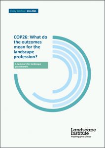 At the COP26 Summit in Glasgow in November, world leaders met to determine the scale of ambition and action to limit global warming. A new LI policy briefing covers headline outcomes around the Glasgow Climate Pact, the UK’s Net Zero Strategy, global adaptation goals, and UK climate adaptation policy, with particular focus on implications for the landscape profession.