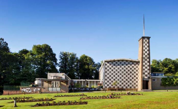 The listed garden at Salisbury Crematorium, designed by Brenda Colvin. © Historic England Archive