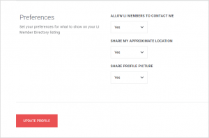 Share my approximate location – setting this to ‘Yes’ will show your city + country on your Directory listing. Setting this to ‘No’ will display your country only.